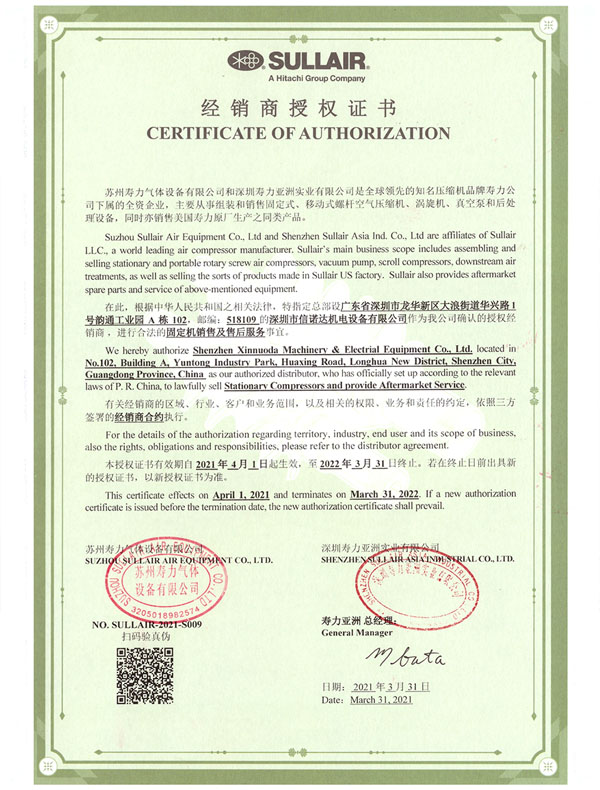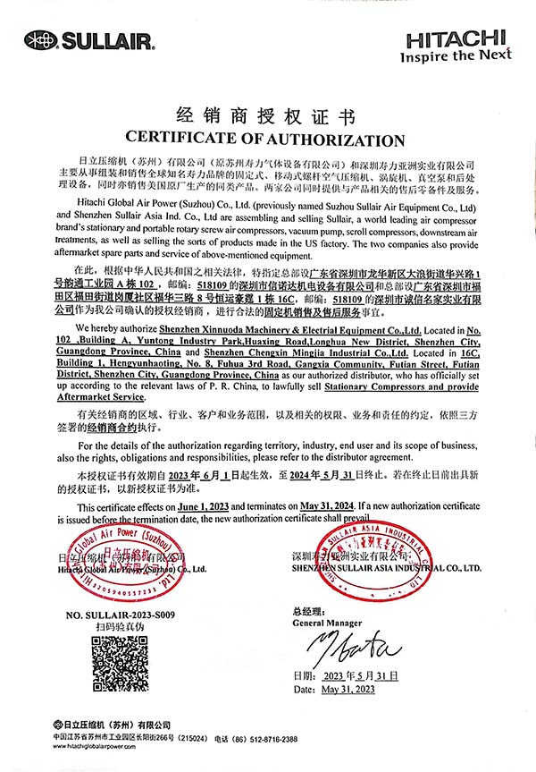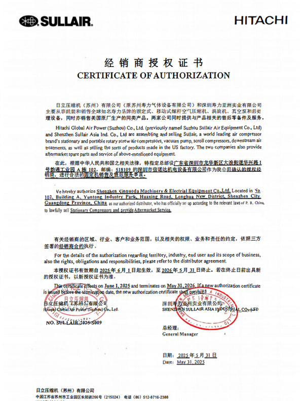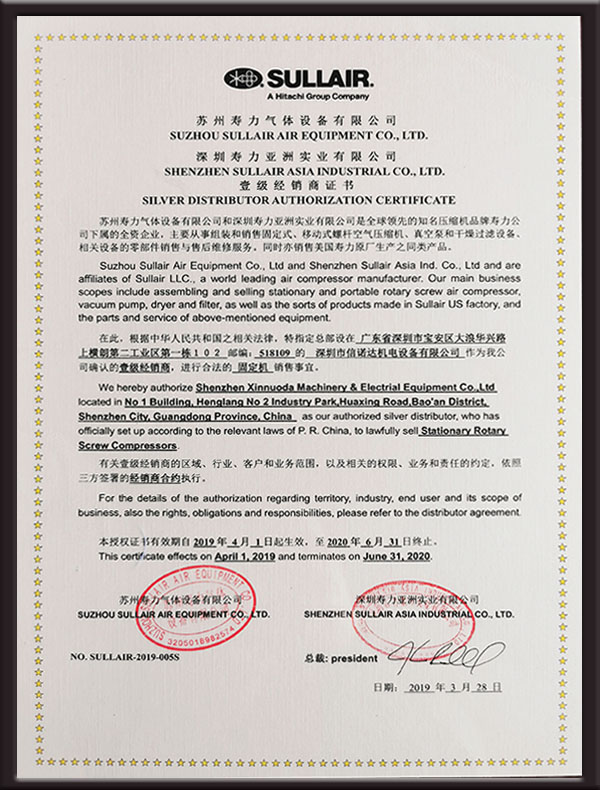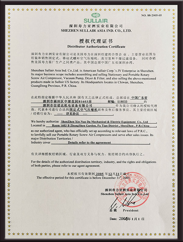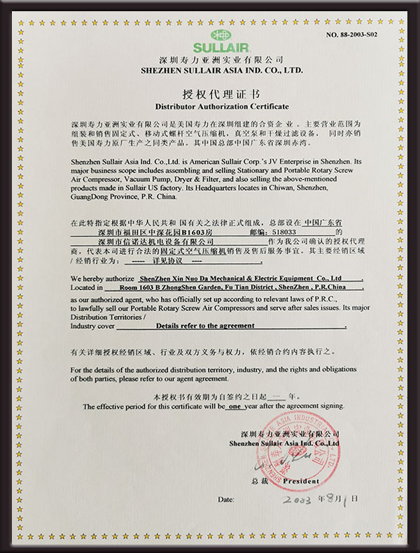 深圳市信诺达机电设备有限公司 于2002年5月注册成立, 并得到了寿力