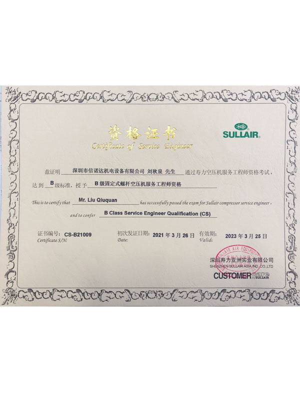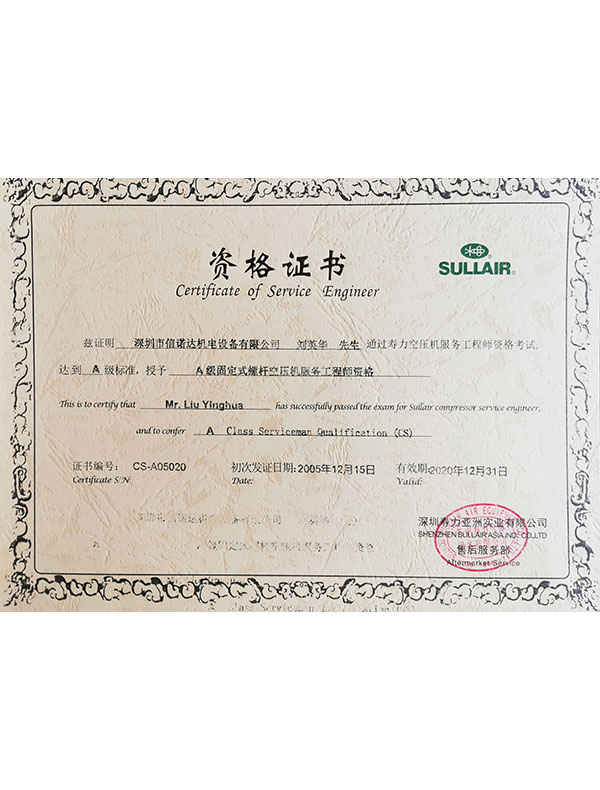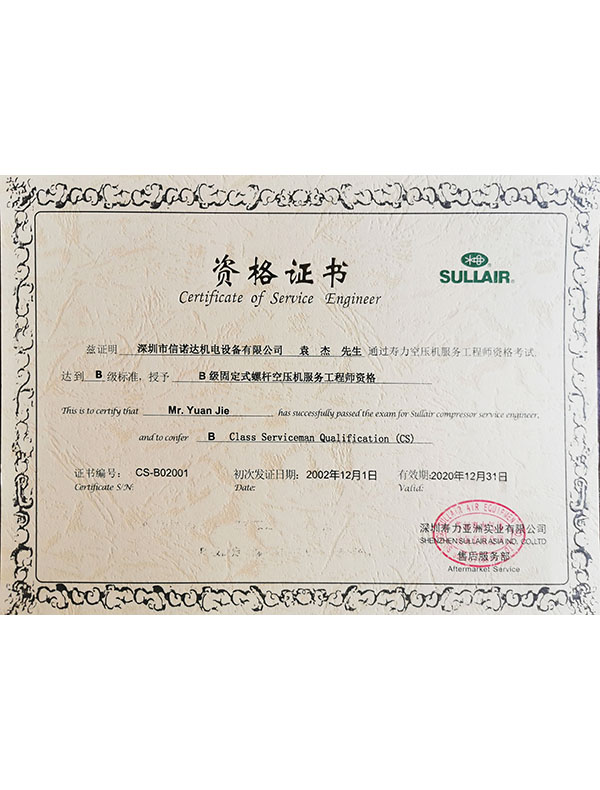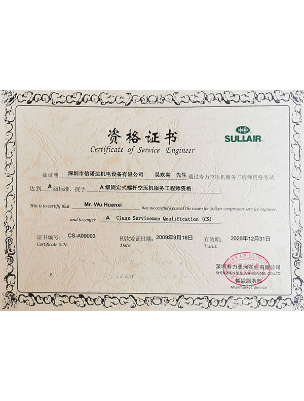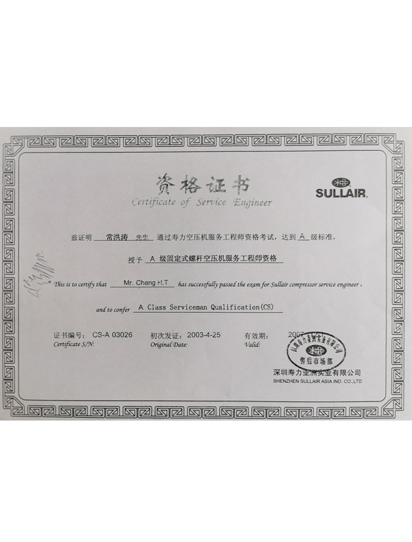 服务工程师,公司所有维修人员都通过了寿力公司的专业维修考试,对螺杆式