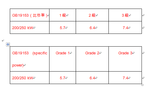GB19153 (specific power)Grade 1Grade 2Grade 3